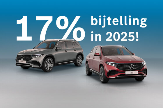 Profiteer alleen dit jaar nog van 17% bijtellingAlleen in 2025 profiteert u nog van 17% bijtelling op elektrische Mercedes-Benz modellen. Ontdek welk model bij u past en profiteer van de voordelen.Meer informatie