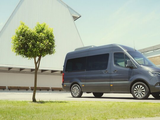 De Sprinter Tourer straalt kracht en professionaliteit uit met zijn robuuste en dynamische lijnen. Het tijdloze ontwerp past zich moeiteloos aan in elke branche en straalt betrouwbaarheid uit.